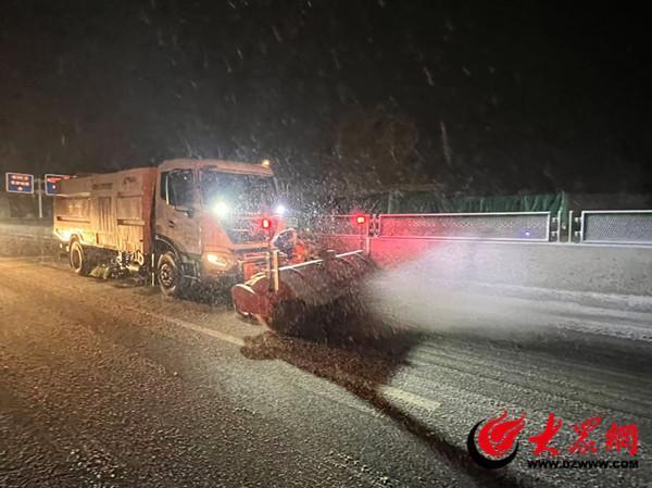 12月12日夜间,滨州市迎来降雪,为保障群众出行安全,滨州交通以雪为令,快速响应,第一时间采取有效措施,第一时间出动养护人员和除雪机械设备对全路段实施清雪作业。